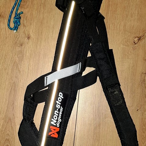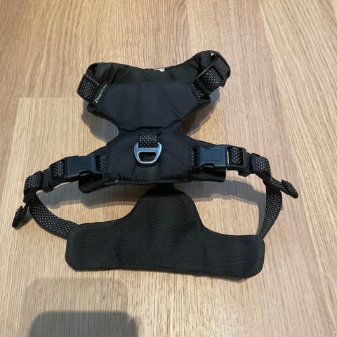 Två fästringar på ryggpartiet. Ställbar runt bröstkorgen.
