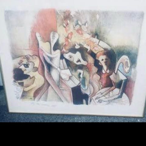 STOR oljemålning på duk av Veiko / Veikko Altona fint skic