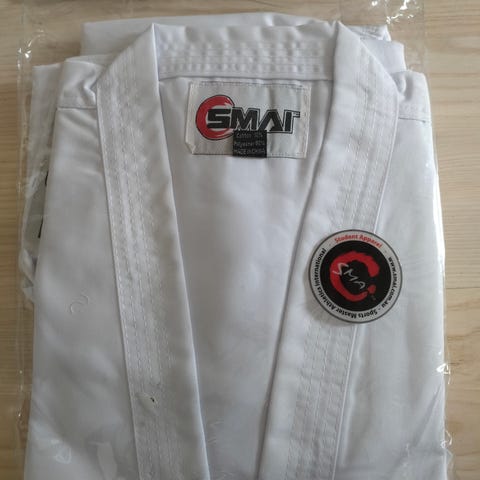 Säljer karatedräkter + skydd enligt pris nedan. Välanvänt, ok skick. Katt finns i hemmet.