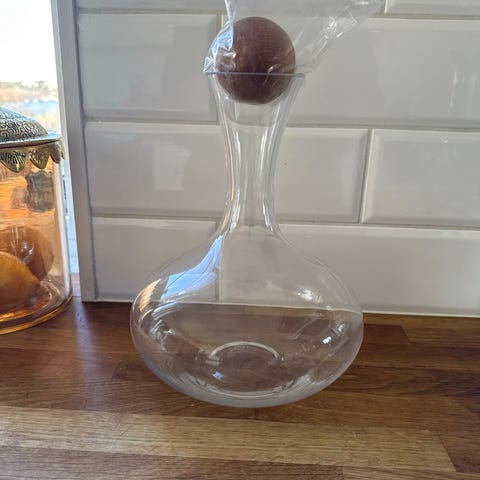 Vinkaraff i keramik med vackert mönster.