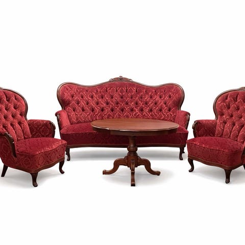 🪑 Original röd textilklädsel med tidstypisk struktur