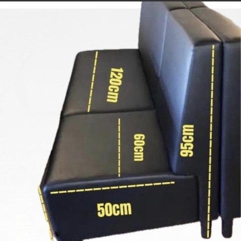 Höjd med ryggstöd är olika då vi valde olika höjder men högsta är 105cm som ni ser på bilderna. 7 delar av modulen har förvaring utom en som är den största.