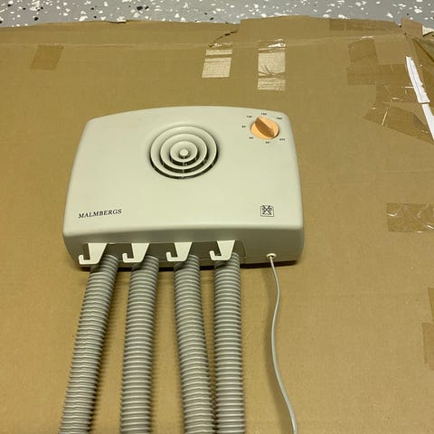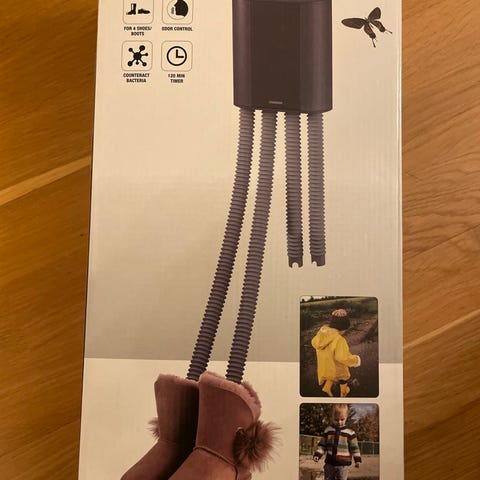 Malmbergs sko- och stöveltork med timer för väggmontage. Bra att ha när barnens skor blir blöta och behöver torkas.