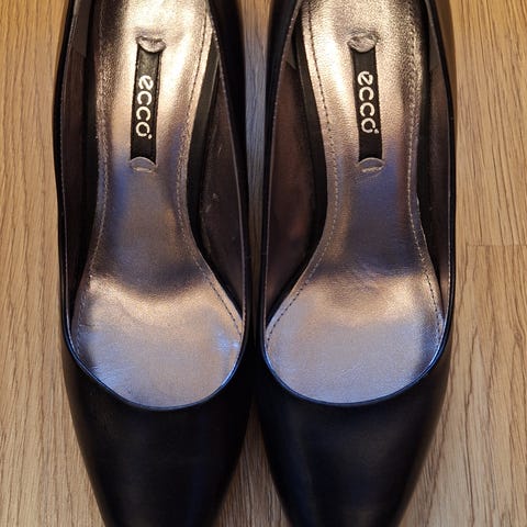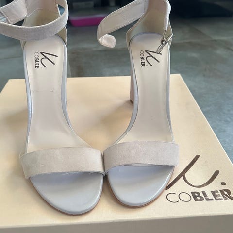 Högl pumps i storlek 38. Skorna är vita med smal hög klack och rundad tå. Ovandel och foder är släta och neutrala, med blank innersula. Passar exempelvis till vardag eller fest där en klassisk vit pumps önskas.