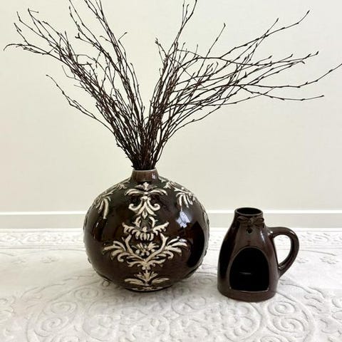 Fin vas med äppelblommor från Boda Shop. 25 cm hög. 8 cm i diameter. Finns i Sigtuna.