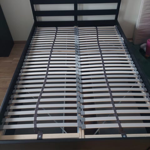 Säng 90x200 med tillhörande låda undertill. Lådan går att användas som extrasäng. Sängen och lådan är stadiga.