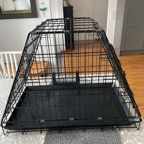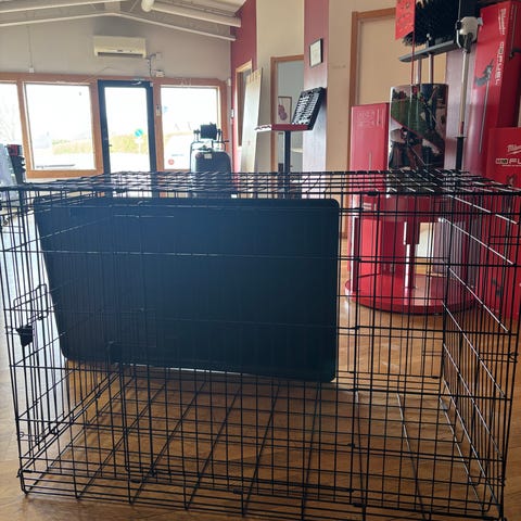 Ihopfällbar hundbur med måtten Ca 56*93cm höjd 65cm i nyskick. Inköpt på Djurmagazinet för 1095kr. Säljes för 600kr. Hämtas i Hasslerör utanför Mariestad