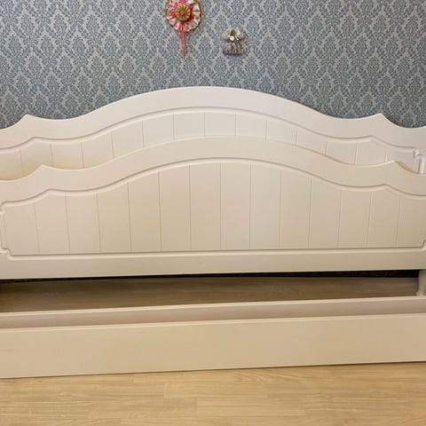 Vitmålad sängram 180x200, gavel höjd 105 cm