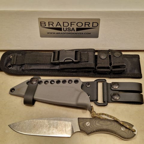 Slipad på slipsten och visar tydliga spår från detta. Dock endast kosmetiskt, kniven är ruggigt vass.