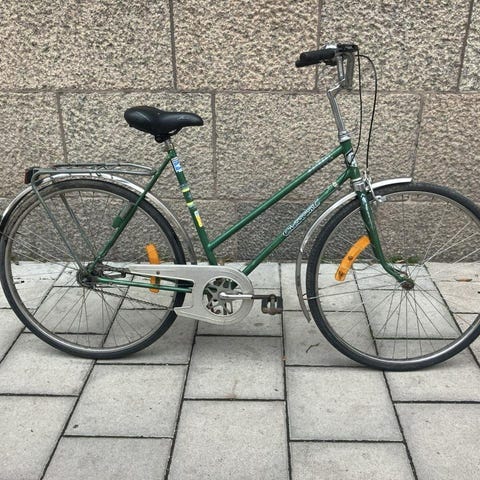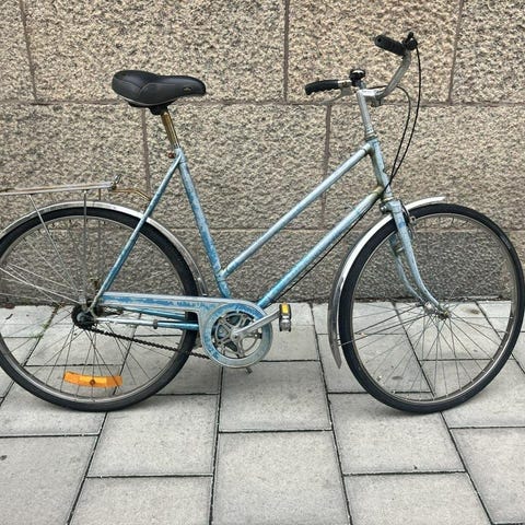 Vacker turkos damcykel från fabrikatet King. Cykeln är utrustad med 3 välfungerande växlar, pakethållare och reflexer. Samt vita handtag och sadel. Cykeln fungerar utmärkt och är körklar!
