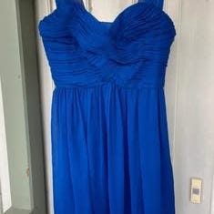 Väldigt fin, knälång, turkos klänning med dekorativa stenar framtill och draperade axelband. Dragkedja bak. Mycket bra skick, har använts en gång och från ett djur-och rökfritt hem. Finns att hämta på Linnégatan i Göteborg men kan också skickas.