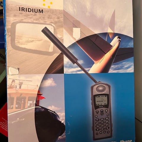 Iridium 9505A satellittelefon. Används av militären och expeditioner världen över. Fungerar i avlägsna områden eller till sjöss. Viktig i en nödsituation när mottagningen bryts. Inkluderar fordonsantenner i olika storlekar, laddningskapacitet över hela världen, billaddare och ett skyddande fodral. SIM-kort ingår ej. Fungerar med kontantkort eller abonnemang. Visning och upphämtning möjlig i Nordingrå.