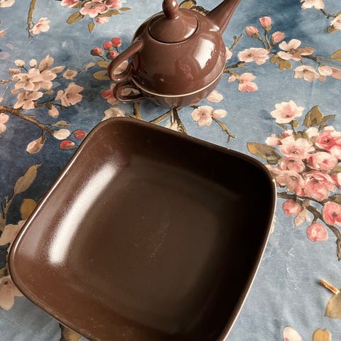tekanna, tillbringare, kruka o 2 skålar i typ samma design