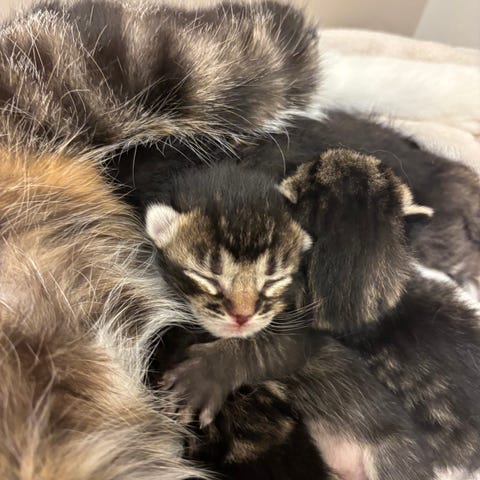 Här har vi fem underbara kattungar – tre tjejer och två killar – som längtar efter ett tryggt och kärleksfullt hem.☀️ De är randiga blandisar huskatter och föddes den 25 mars.