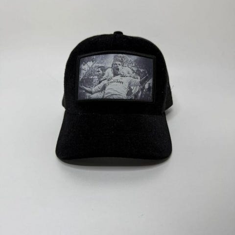 Denna unika trucker keps ar ett mäste för fotbollsfans! Med glittrig finish och en framträdande bild av legendariska fotbollsspelare frän Real Madrid (inkl. Cristiano Ronaldo) i en glädjescen.