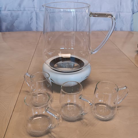 Glöggryta i koppar med 4 st glögglas 350 kr 5 glögglas med skedar 80 kr Allt 400 kr