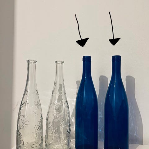 Buteljfärgade små flaskvaser.