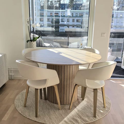 Runbord och mitten kan man snurra runt för att servera alla andra, den är tung äkta trä