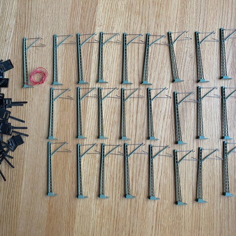 4st bågbroar(Märklin 7163), 2st raka broar(Märklin 7168), 6st böjda broar(Märklin 7167) alla i plåt 25 st 3 cm bropelare(Märklin 7064) och 15 st 0,6cm bropelare(Märklin 7065) tunnel, perrong o stationshus 15 st böjda 5200 skenor, 16 st böjda 5100 skenor, 28 st raka 5106 skenor, 1 ledningsskena, 1 stoppbock, 5 st korta raka skenor och 3 växlar Allt 5800 kr