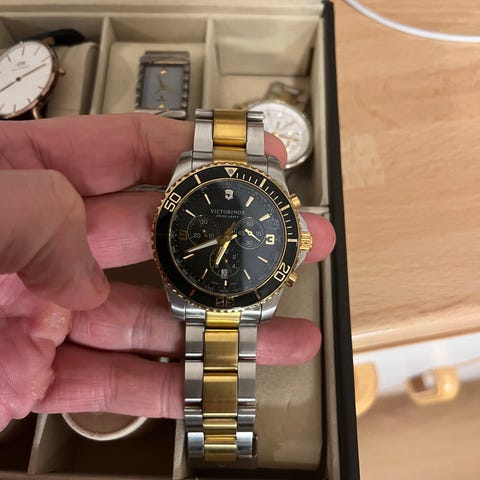 Säljer denna klockan från Victorinox. Fungerar som den ska och är väldigt sparsamt använd. Ingår originalbox och länkar för storleksjustering.