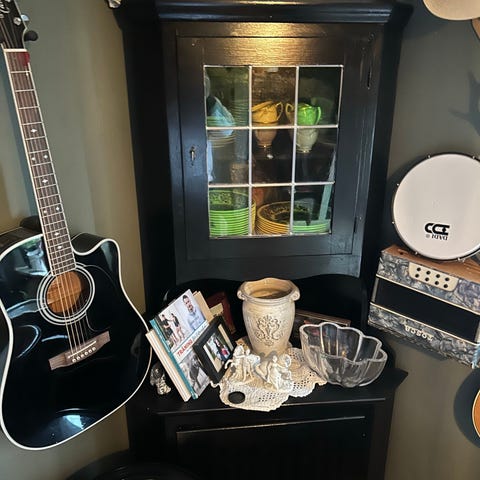 Hörnhylla i bra skick. Höjd 106 , bredd 50, djup 38 cm