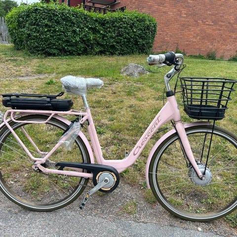 Komplett el cykel med batteri, laddare och två uppsättningar nycklar. Lås till både ram/bakhjul samt till batteri. Batteriet har underhållsladdats under tiden cykeln ej är använd.