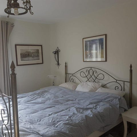 Viss gulnad i färgen där madrass och kuddar legat i kontakt.