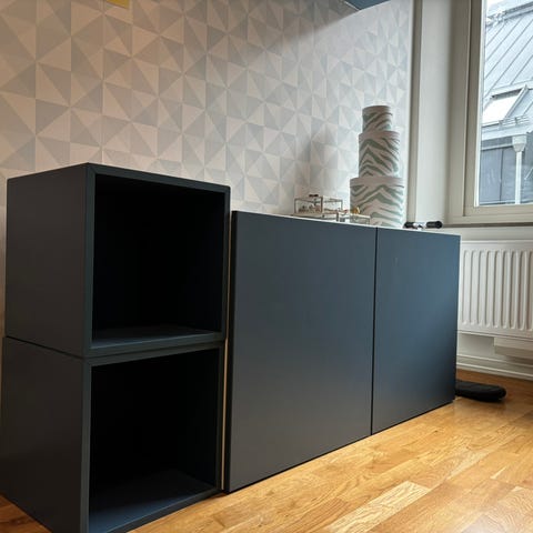 På bilden kan du se att en av dem används vertikalt också. Bra för förvaring. Kan även användas som tv bänk