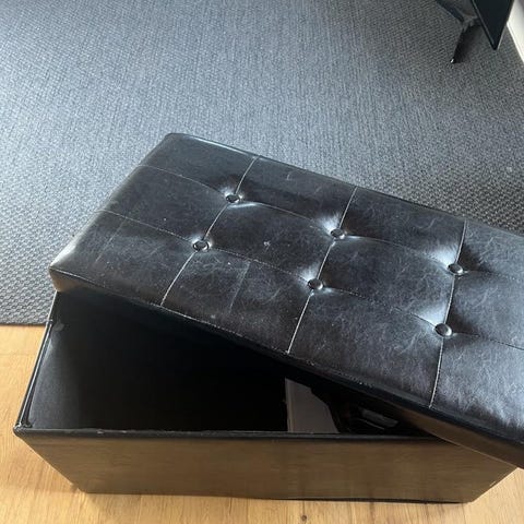 Sittpuff från Mio, My är en elegant puff som bjuder in till extra sittplatser. Puffen är klädd i ett slitstarkt möbeltyg och har en vadderad sits. Nyskick , kommer från djur och rökfritt hem . 40 cm hög , 38 diameter