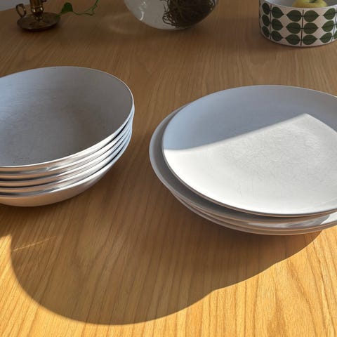 Allt är köpt på IKEA, och i mycket fint skick. Sparsamt använt och alla tallrikar är hela!