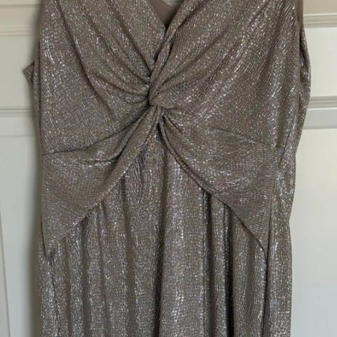 Klänning från Ilse Jacobsen med ett unikt mönster i grå och blå toner. Klänningen har en draperad halsringning och en dekorativ knutdetalj i midjan som skapar en smickrande silhuett. Trekvartsärmar gör den perfekt för både vardag och fest. Klänningen är sparsamt och därför i väldigt fint skick.