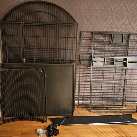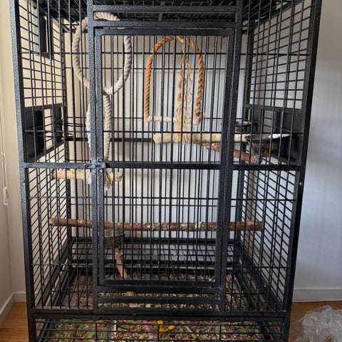 Säljer större papegojbur och akvarium med tillbehör.