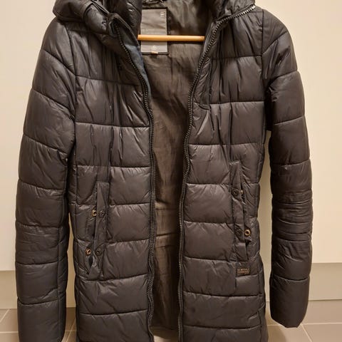 Jackan är figursydd med quiltade detaljer, slimmade sömmar och normal passform. Den knäpps med dragkedja framtill och fem tryckknappar.