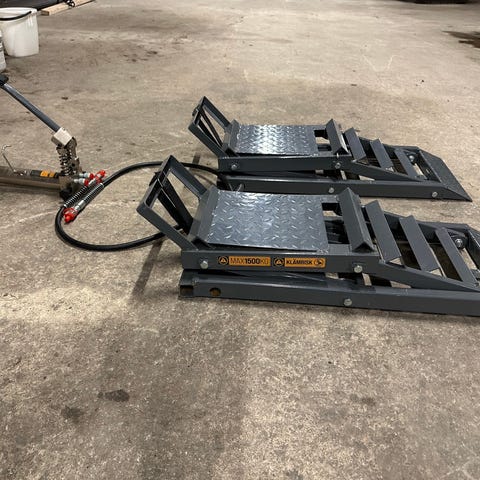 körbana L=413cm,tot L m ramp 520cm.Min h=18cm.Lyften har 8 cylindrar.