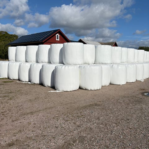 Analyserat hösilage i både fyrkant (14 )lager plast)och rundbalar (12 lager) finns till försäljning,torv och torvmix i rundbalar