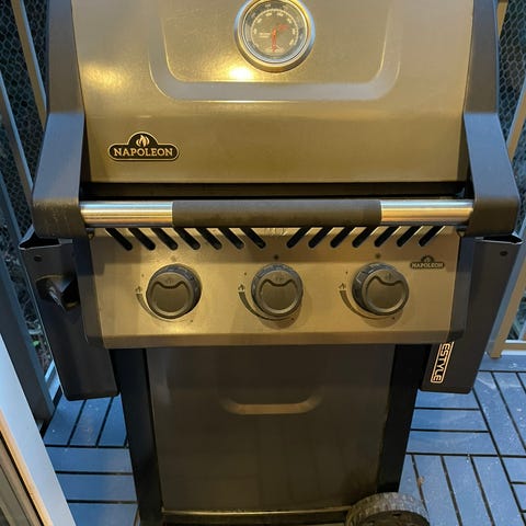 Napoleon 285 på rullbart stativ. Välanvänd och väldigt omtyckt. Medföljer stekplatta i gjutjärn samt överdrag.