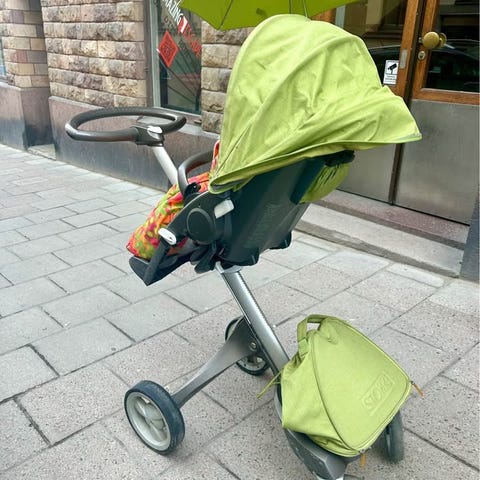 Barnvagn Stokke Xplory med ligg- och sittdel + åkpåse
