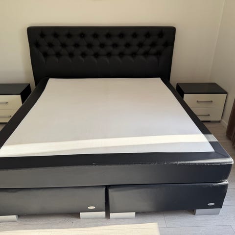 Säljer en bekväm och stabil dubbelsäng med trästomme i bra skick. Perfekt för sovrummet!