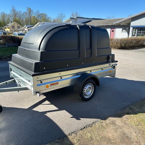 I lager för omgående leverans. med kåpa EU släp 80km/h (endast släp 9995:-) med tipp Totalvikt: 750 kg. Lastvikt: 610 kg. Flak mått 253 x 129 cm. Invändiga surrnings öglor. Däck: 155/70 R 13. EXTRA: 37 cm förhöjnings lämmar 2995:- Kapell lock 1495:- 70 cm gallergrindar 4690:- Finansiering ordnas via My Money ! Har även andra släp, trailers, båtkärror och tippbara kärror!