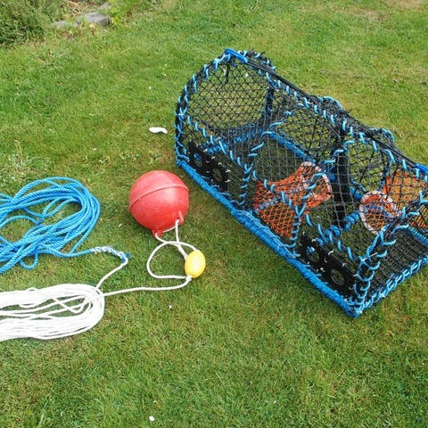 Fina fiskemjärdar, fiskeburar oanvända.
