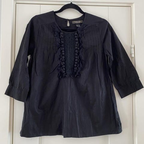 Elegant tunika från Frontrow med ett unikt ormskinnsmönster i svart, beige och rosa. V-ringningen är vackert dekorerad med guldfärgade detaljer och har en justerbar knytning framtill. Denna tunika har en avslappnad passform och storlek M