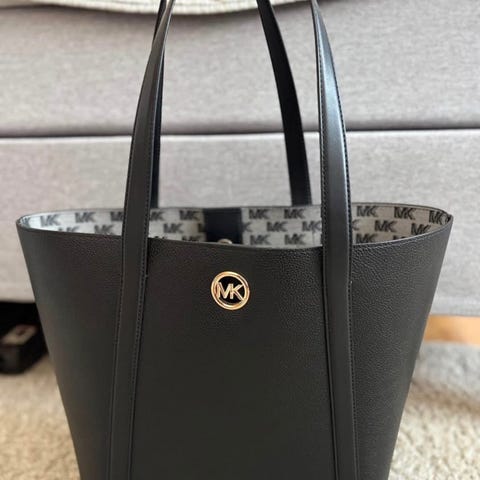 Jättefin shopper från Valentino Garavani i svart skinn. Hela väskan är i jättefint skick, men högst upp på handtaget har skinnet slitits, mer på det ena än det andra. Är säkert något man kan ordna, om man vill :) inköpt 2022 på El Corte Ingles i Marbella. Dustbag och alla tillbehör finns kvar, förutom kartongen då den inte gick att resa hem med.