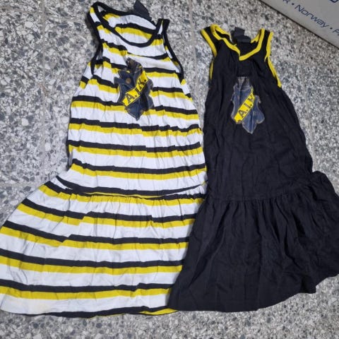 Tre klänningar från Villervalla i storlek 110. Fint använt skick, lite blekta i tvätt. Säljes tillsammans.