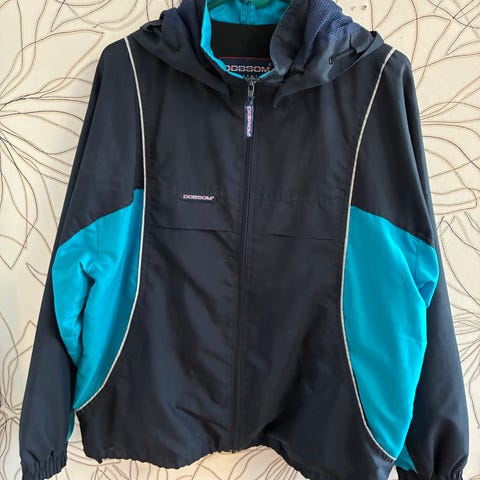 Jackan har 2 fickor fram och 1 innerficka, alla med blixtlås. Muddar i armslut, dragsko i midja. Byxan har 2 fickor med blixtlås. Jacka o byxa kan kopplas ihop med blixtlås.