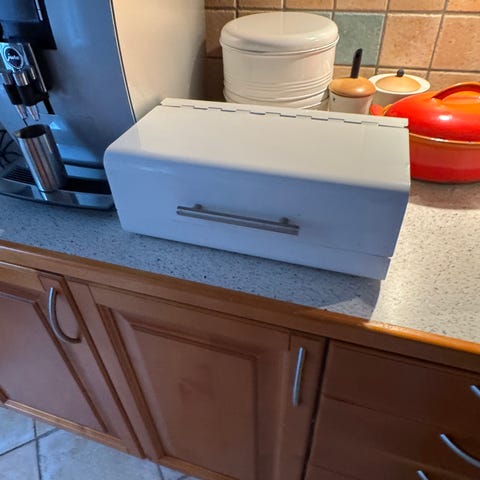 Vaniljfärgad plåtburk med text på ena sidan. Små tecken på användning finns men i fint skick.