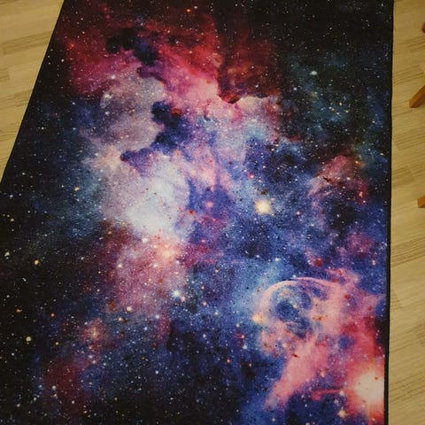 Plastmatta -70 tal, orange/grön/brun. Kraftig kvalitet.