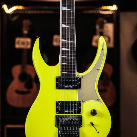 Tillverkad i USA, inklusive icke-original fyrkantigt hardcase med rosa foder. Reverse-headstock. Originalmikrofoner (Seymour Duncan Full Shred och JB). Tremoloarmen är utbytt, volymratten är ersatt och baksidans skyddsplåt saknas.