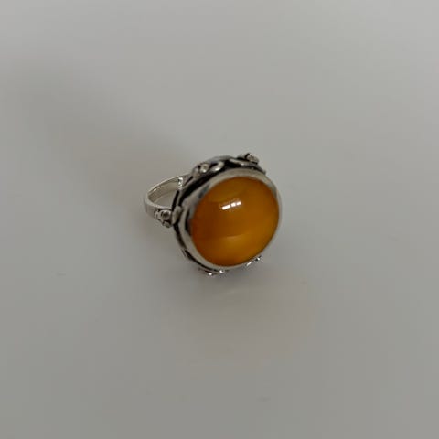 Vintage silverring med stor bärnsten av tyske designern Georg Kramer