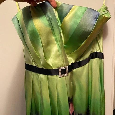 Mått: Byst fram 54 cm; Midja ca 60 cm; Längd 133 cm