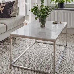 Två vita bord med metallben